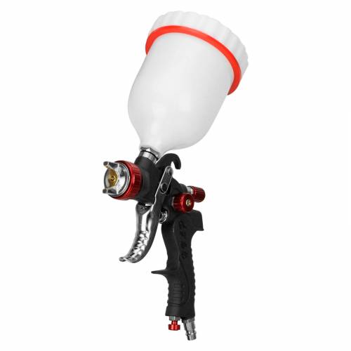 верхний пластиковый бак 600 мл; - регулировка подачи материала; -регулировка факела распыла; - сопло 1.4 мм; - легкий вес; - быстросъемное соединение;