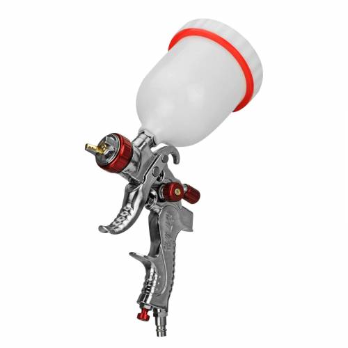 верхний пластиковый бак 600 мл; - регулировка подачи материала; -регулировка факела распыла; - сопло 1.4 мм; - легкий вес; - быстросъемное соединение;
